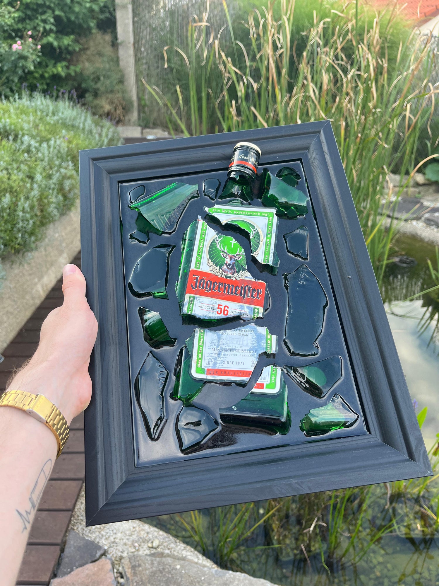 Ručně dělané obrazy z epoxidu o rozměrech 37x28cm a možnosti zavěšení na zeď. V případě zájmu o obraz z vlastní láhve nás stačí kontaktovat na email epwoodyy@gmail.com.