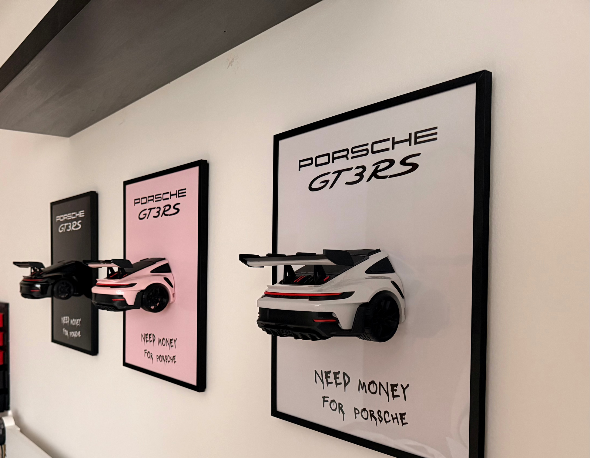 Ručně vyráběný obraz s modelem vozu Porsche 911 GT3 RS je poctou ikonickému sportovnímu vozu. Sestavený z 33 samostatných částí, které vytvářejí výrazný prostorový efekt. Model je ručně lakovaný v několika vrstvách, díky čemuž působí realisticky a živě. Minimalistický hliníkový rám podtrhuje moderní vzhled a umožňuje snadné začlenění do interiéru, kanceláře nebo garáže 🏁